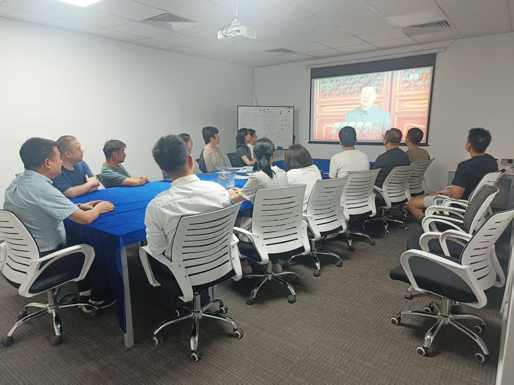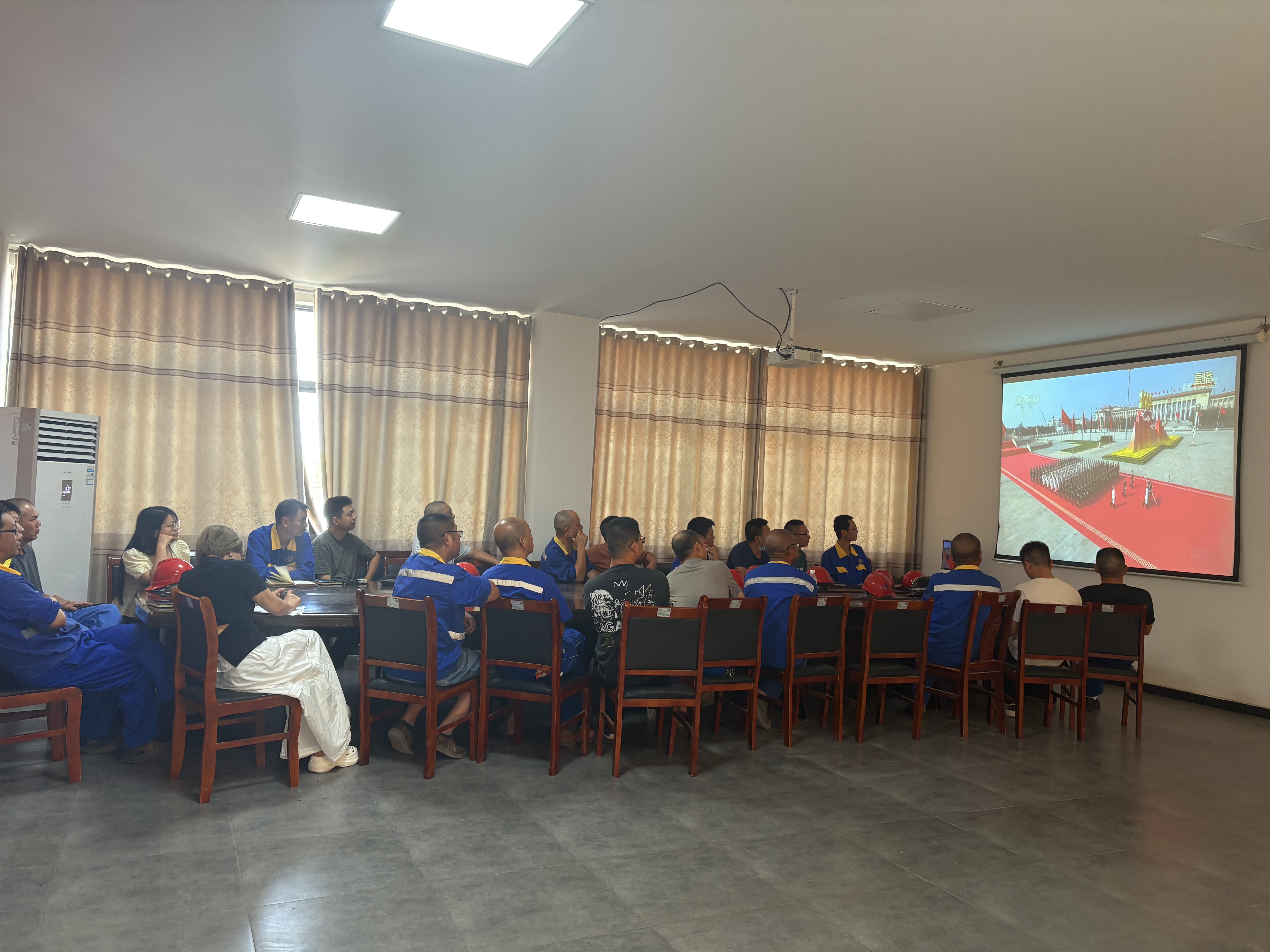 上午9時(shí),大家準(zhǔn)時(shí)聚集在各公司的會(huì)議室,自發(fā)整理好衣襟,眼神中滿是期待與肅穆。當(dāng)直播畫(huà)面切到天安門廣場(chǎng),鮮艷的五星紅旗在晨光中冉冉升起,激昂的歌聲里,是跨越代際的信仰傳承,是屬于京蘭人的集體共鳴。?